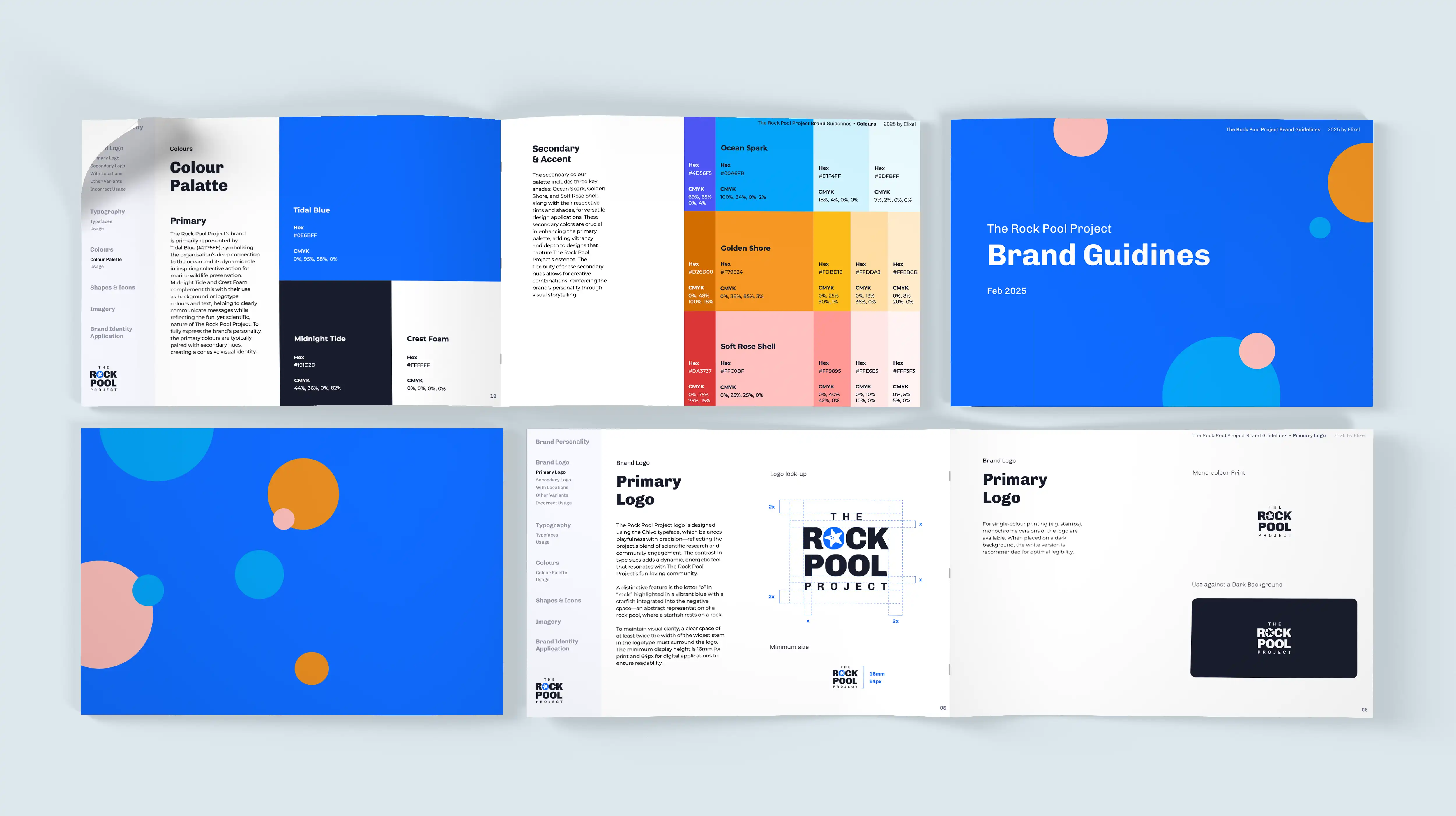 It all started with a brand workshop to get to the heart of their story, allowing us to define their values, tone of voice, and visual direction. From this collaborative session, we brought their personality to life with exciting mood boards and colour palettes that reflected their free, accessible, and fun approach. We also explored their brand architecture to ensure the relationship between the parent organisation and its projects was crystal clear. This foundational work led to the creation of fresh logo concepts, and a comprehensive set of brand guidelines. This complete toolkit covered everything from typography and colours to a custom suite of sea creature icons, and importantly, it set clear rules for imagery that reflected their conservationist spirit.